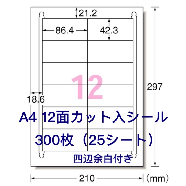 - マルチプリンタ対応□300枚 A4サイズ 12面カット入□ラベルシール□四辺余白付き□宛名シールにも最適