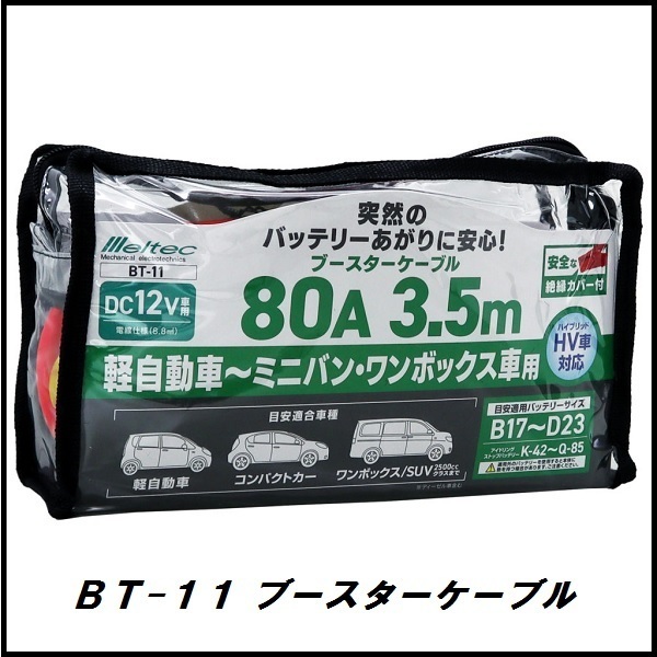 - 正規代理店 大自工業 BT-11 ブースターケーブル 80A/3.5メートル DC12V用 メルテック/Meltec ココバリュー