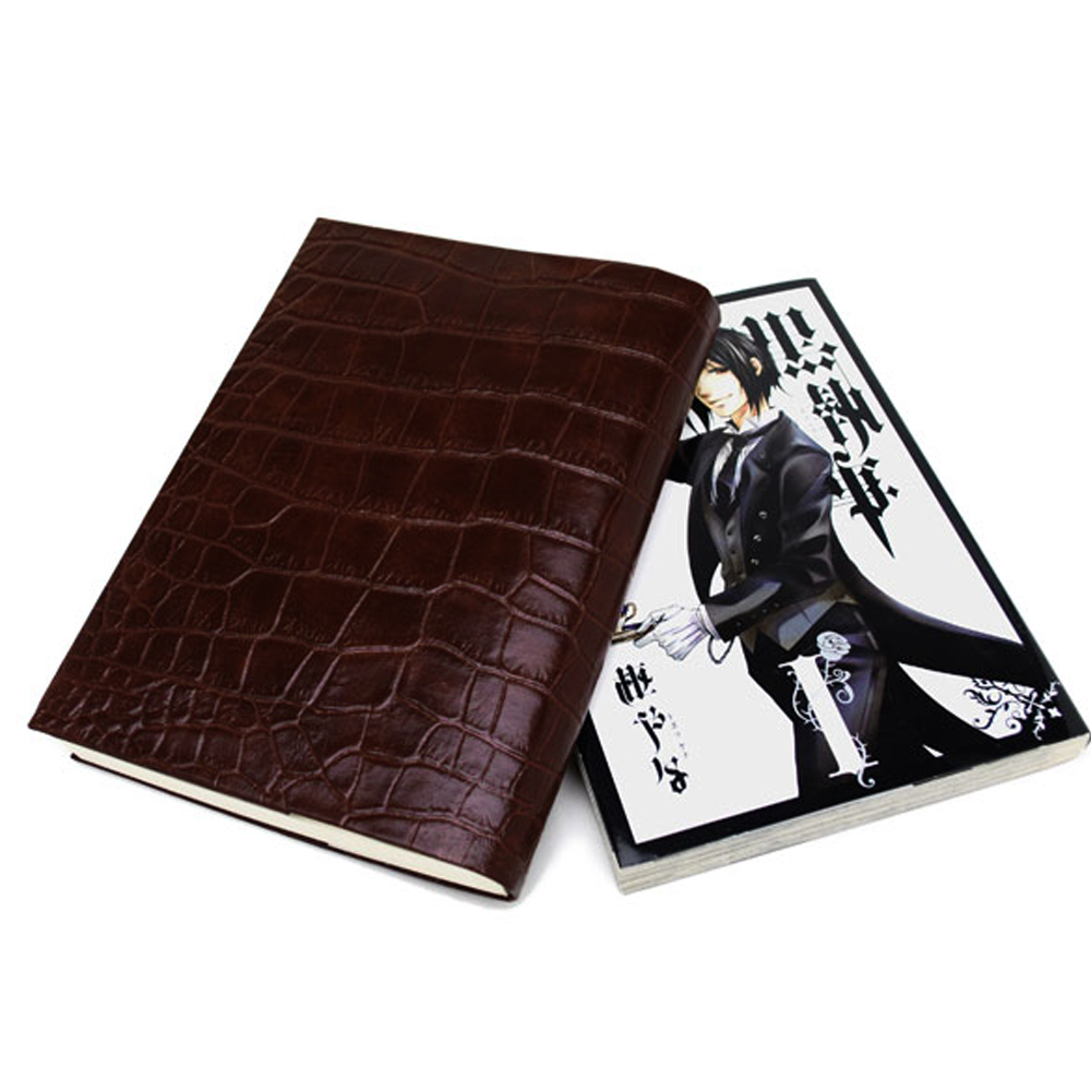 - 送料無料★お手入れいらずのリサイクルレザーで作ったブックカバー★B6サイズ★クロコ型押しブラウン
