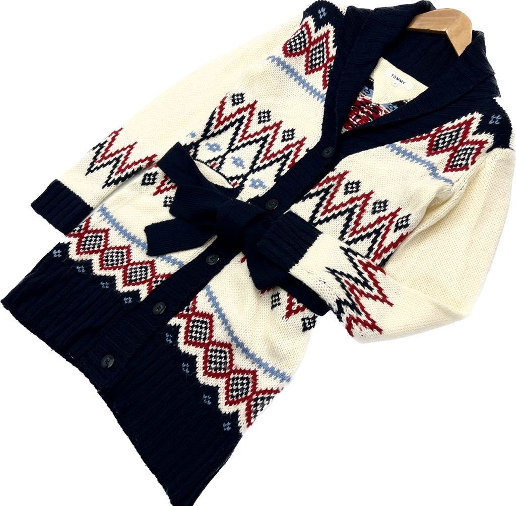 - TOMMY HILFIGER ☆ おしゃれ♪ カウチン ニット セーター ロング アクリルニット オフホワイト ネイビー S トミーヒルフィガー■S1005