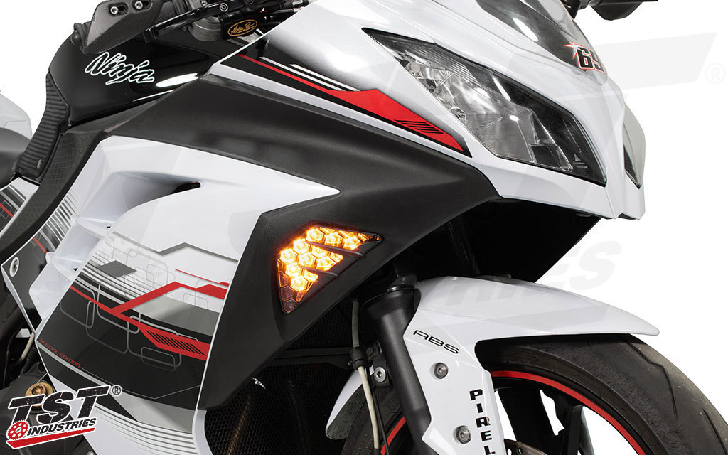 > TST Industries NINJA250 (13-23) シーケンシャル 発光 NEXUS フロント LED ウィンカー 13 14 15 16 17 18 19 20 21 ニンジャ カスタム