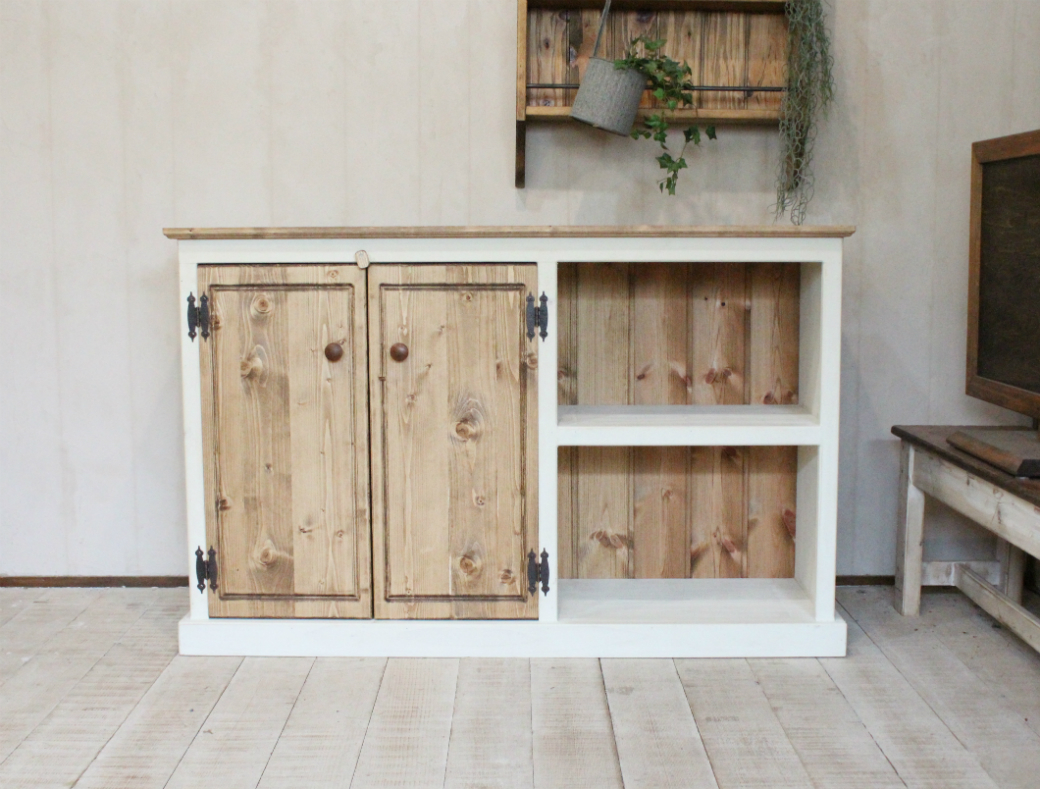 - ホワイトシャビー 収納ラック ローボード キッチンラック アンティークホワイト