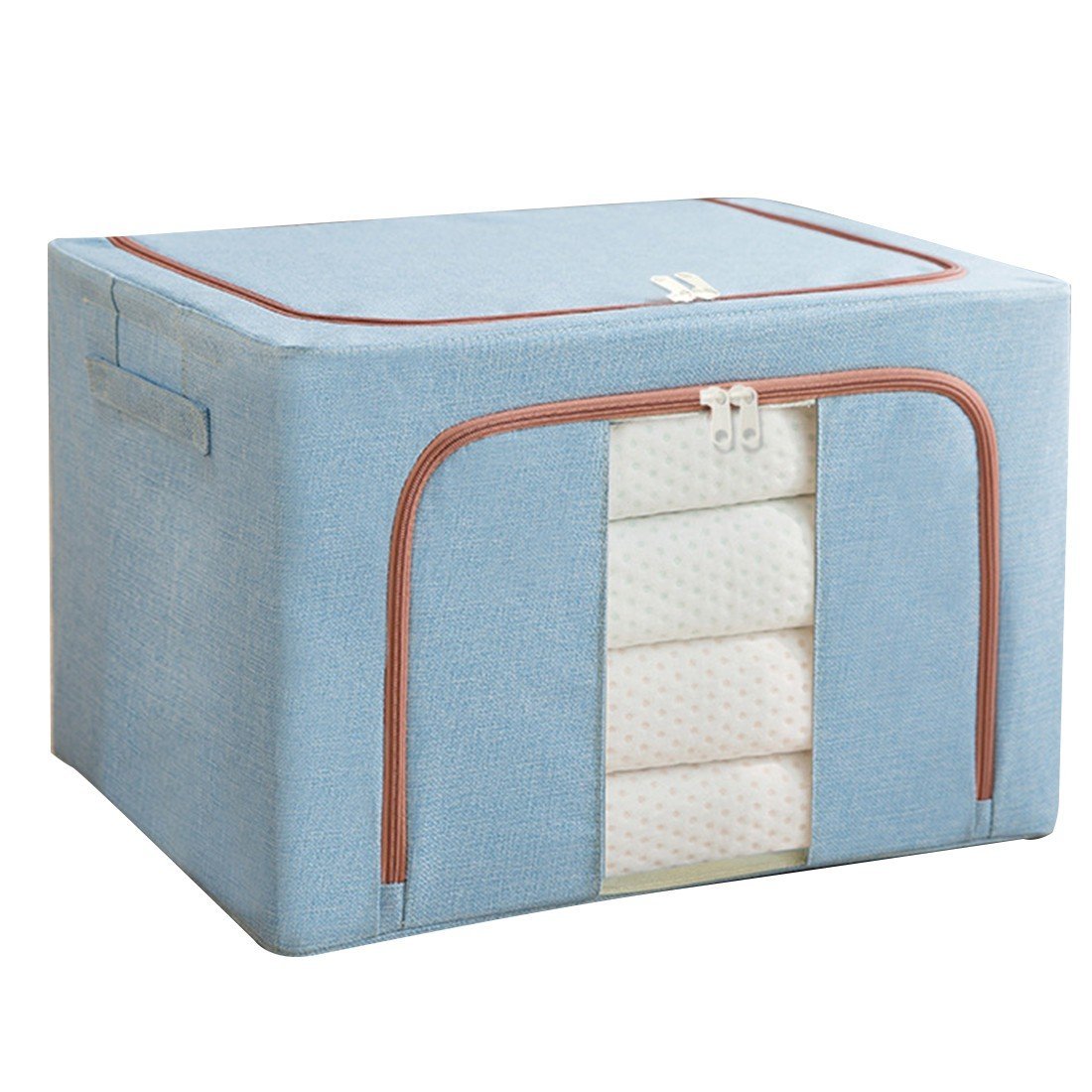 - 収納ボックス 24L 側面窓無し 収納袋 収納ケース 布団収納 衣替え 収納スツール 中身が見える窓付き 折りたたみ ブルー