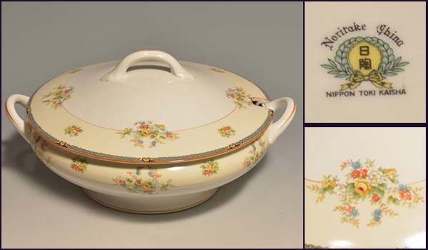 > オールドノリタケ 日陶印 1935~1943年頃 花文 転写 スープ チュリーン 口径:25㎝ a1903