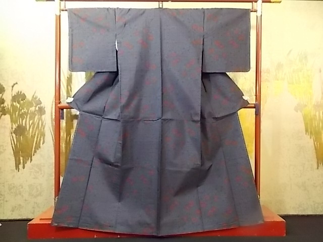 > きもの今昔4733 本場大島紬 広衿袷手縫い仕立て 黒地に藍の7マルキ絣 躾け糸付き 未使用品 身丈160cm