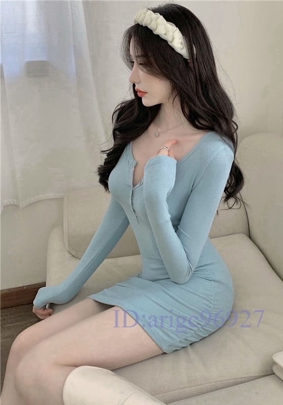 - F220★*セクシー*エロかわ?ぴったりボディライン?Vネック*ギャザー入*花柄*総柄*タイトワンピース