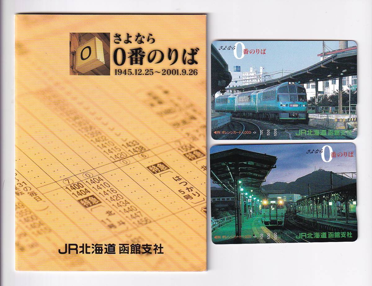 - ◆JR北海道・函館支社◆さよなら0番のりば◆記念オレンジカード1穴使用済2枚組台紙付き