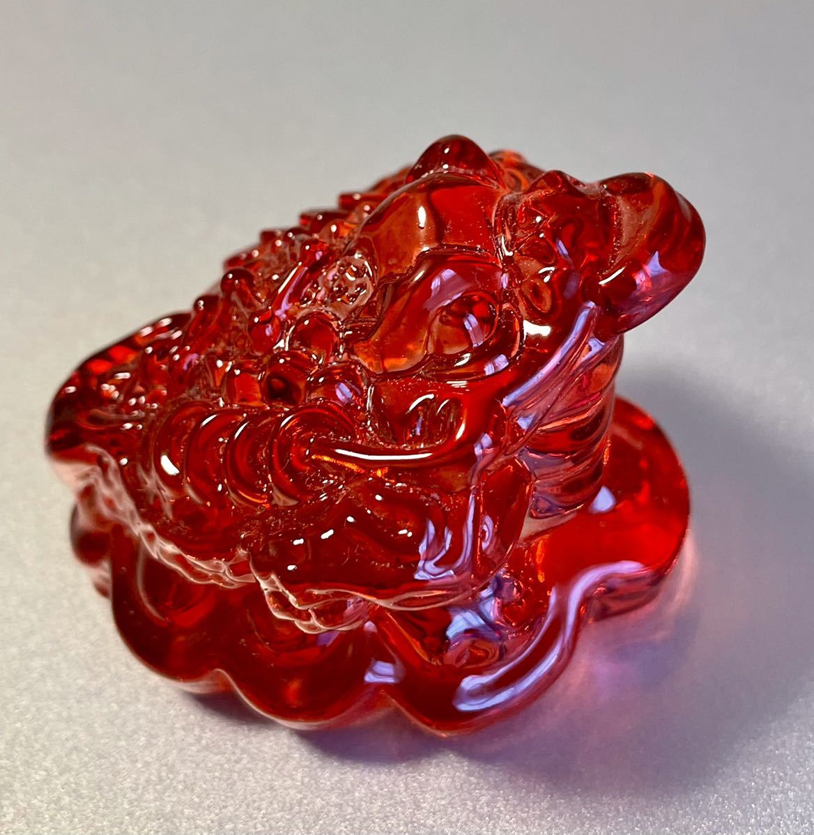 - 銭蛙 三本足蛙 金蟾 財を集めるカエル キンセン ヒキガエル ラッキー 幸運 財運UP 金運 パワーストーン 縁起物 置物インテリア レッド