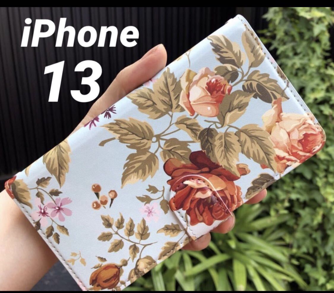 > iPhone13ケース クラシック ローズ バラ アンティーク 花柄 フラワー 携帯カバー 手帳型ケース 手帳型 スマホケース iPhone