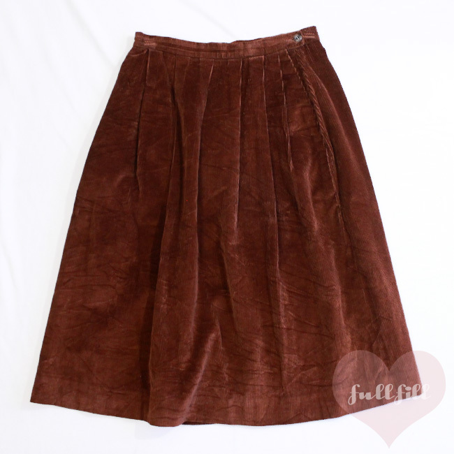 - スカート 古着 レトロ コーデュロイ ブラウン シンプル アメリカ古着 ビンテージ ヴィンテージ vintage 70s 80s おしゃれ 無地 used