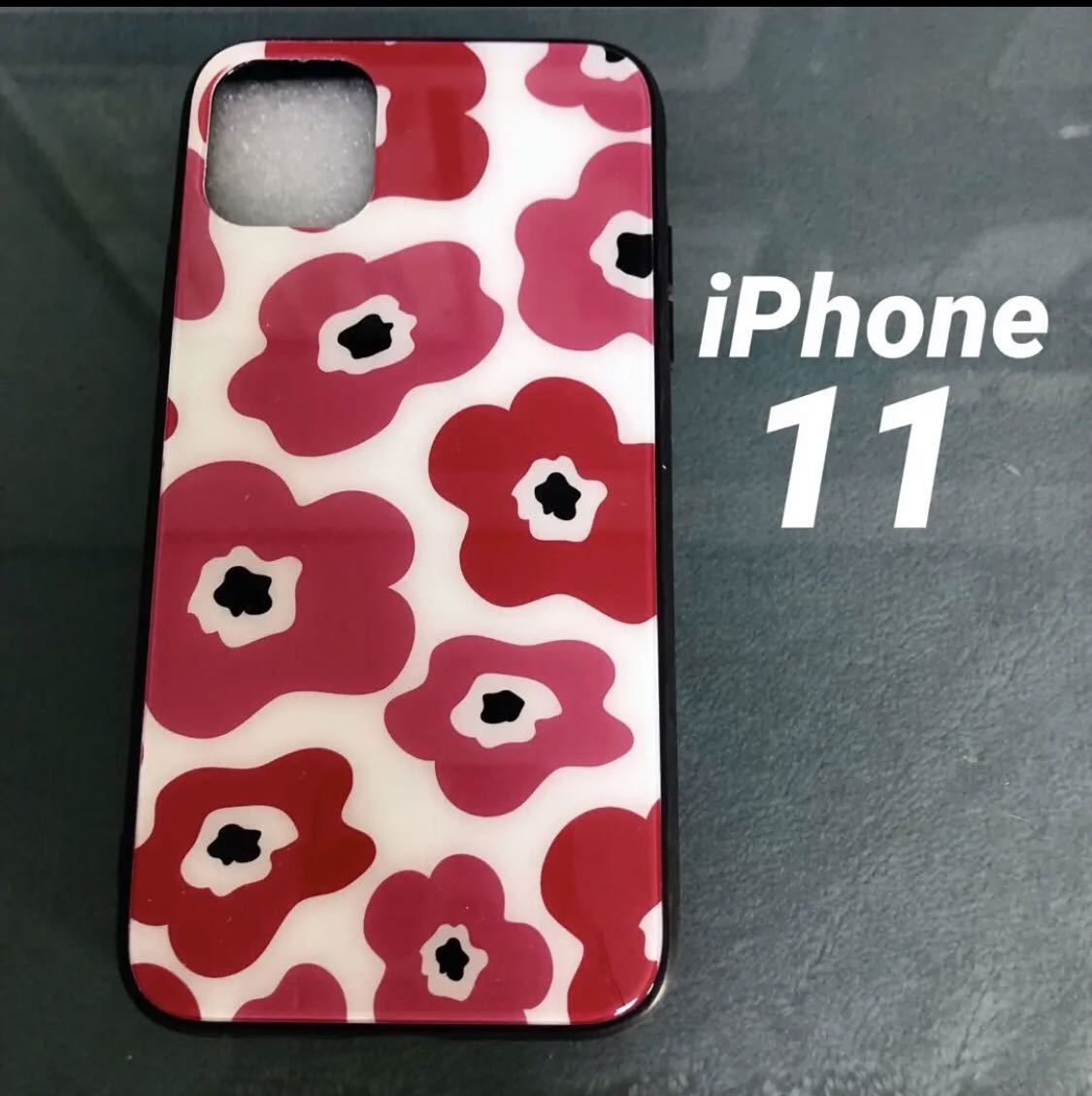 - iPhone11ケース 強化ガラス北欧 花柄ピンク 管理北ピ-4 iPhoneケース フラワー 花