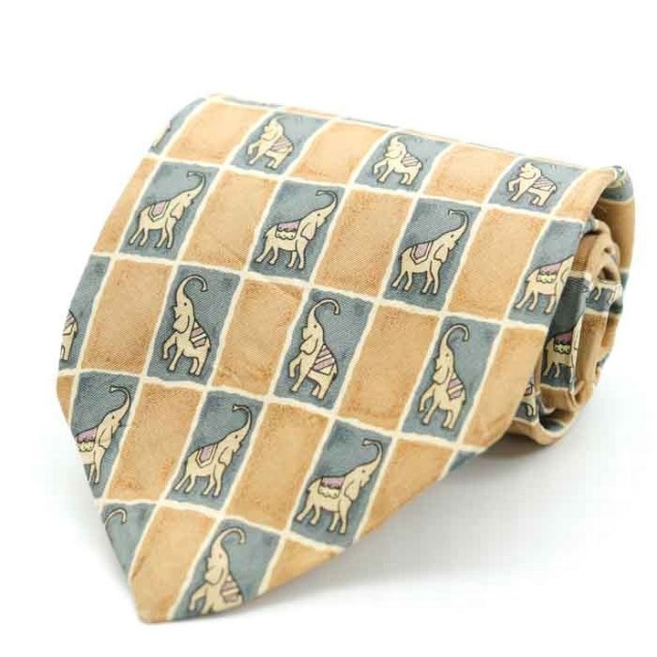 > ジムトンプソン 総柄 動物柄 象 格子柄 高級 シルク ブランド ネクタイ メンズ ベージュJIM THOMPSON
