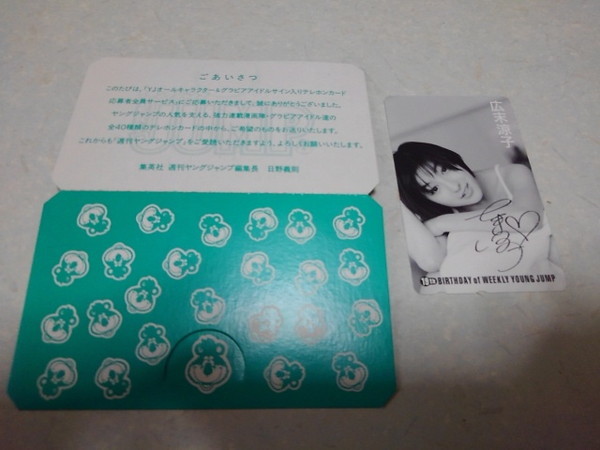 - ■ 広末涼子 ヤングジャンプ 【 未使用新品 テレカ テレフォンカード ♪台紙&ヤンジャンの封筒付き 】