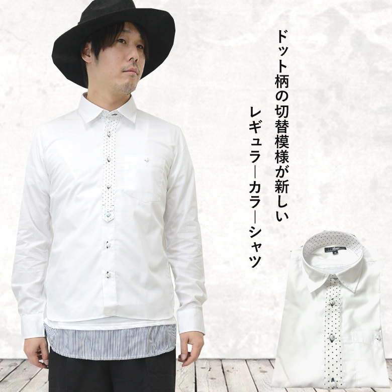 - 【フロントドット柄 ロールアップ可 長袖シャツ】【型番131n2760】新品ホワイトM