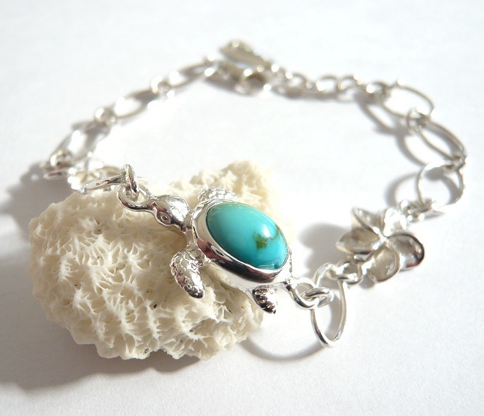 - ★ 奉仕品 ★ 即決 SV925 ブレス 亀 ホヌ プルメリア ターコイズ トルコ石 A1