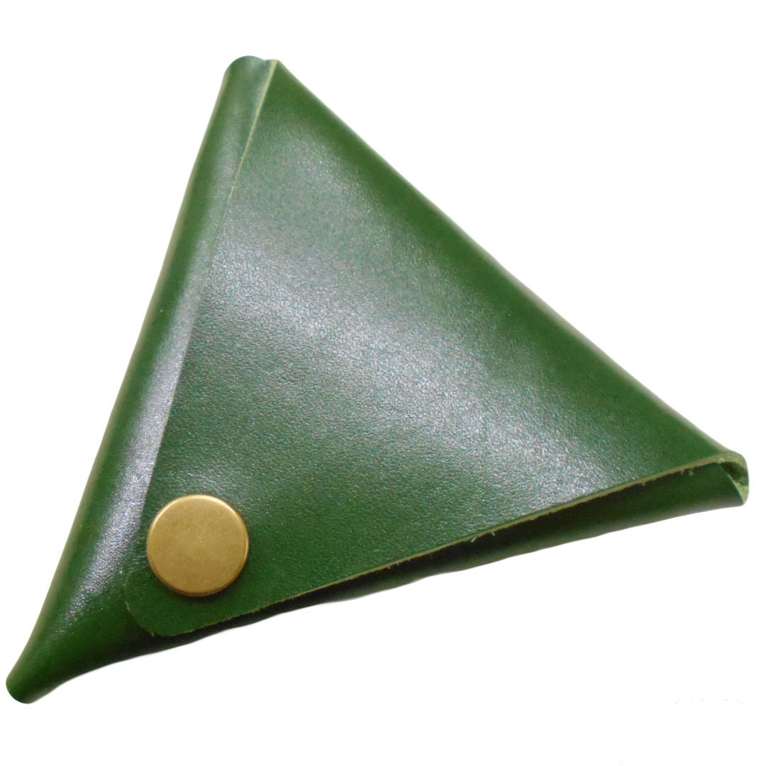- 三角コインケース レザー /グリーン/小銭入れ 財布 レザー 本革 コンパクト メンズ レディース