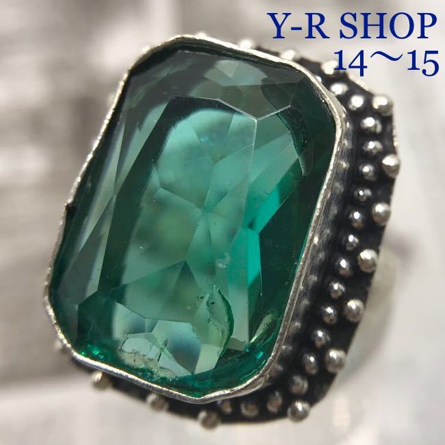 > 14号15号★訳ありパライバトルマリン風カラーストーン のアンティーク調リング★レディース指輪シルバー 925刻印カラーストーン 新品Y-R