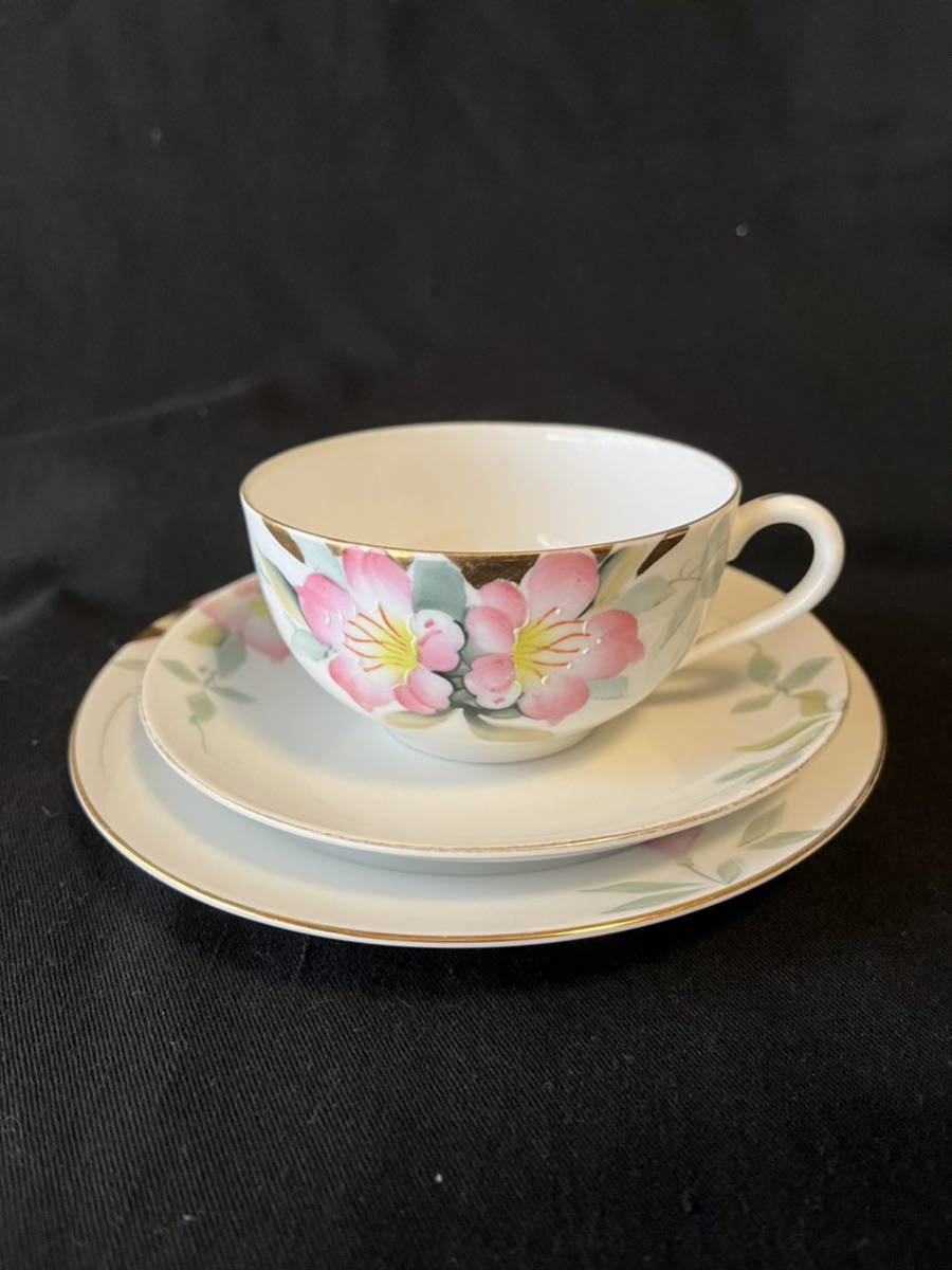 - オールドノリタケ アザレアのトリオ 。人気の米ラーキン社からの発注品マーク 割れ、かけなし。