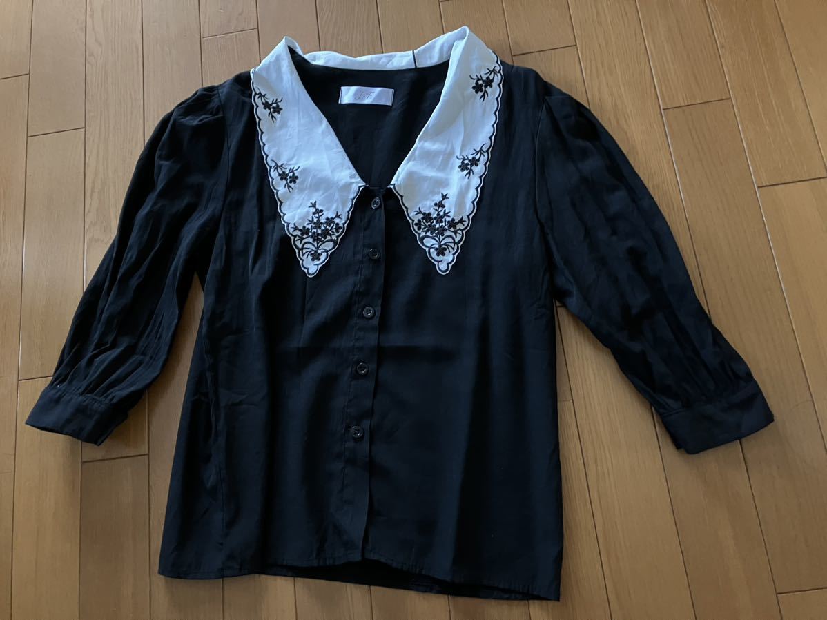 - ブラウス★黒★大きな襟★刺繍★ナチュラル★可愛い