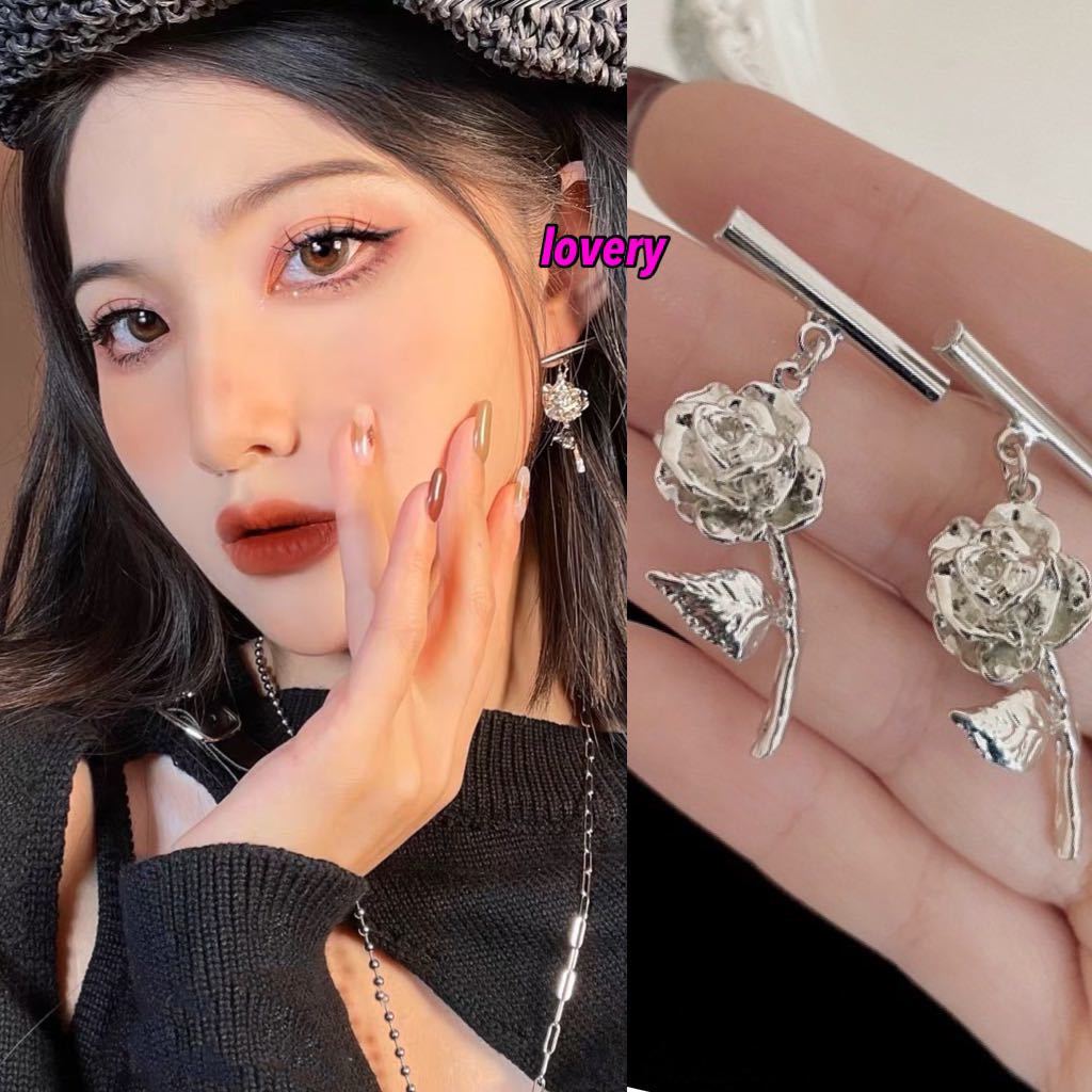 - クールでお洒落な薔薇シルバーピアス フラワーピアス ロック バンギャ ゴズロリ 薔薇 韓国ファッション シルバーピアス ピアス