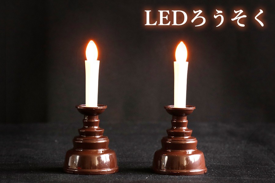 - 国産 仏具 ■ LED ローソク 1対 (2本組)特小サイズ 茶 ■ お仏壇に ■ お盆 お彼岸 お墓参り 供養 ■ 高さ7.7cm