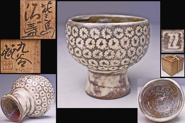 - 河原文一 ★ 花三島 ぐい呑 ★ 共箱 ★ 九谷焼 ★ 花文が良い景色の逸品 ★ 酒器