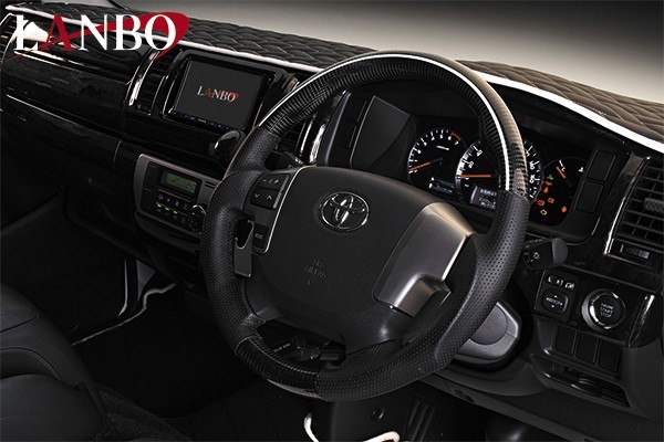 - LANBO ハイエース 200系 4型 /5型 /6型 /7型 プレミアム カーボン ステアリング 【ホワイトライン】LSTH200-PCB-WH