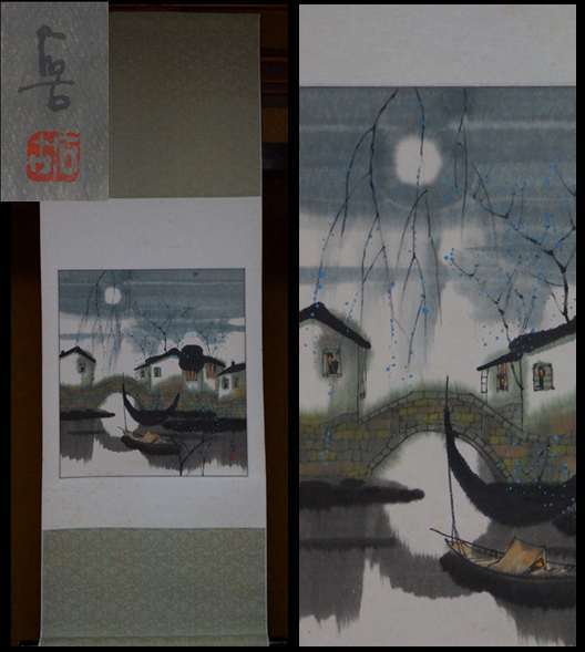 - 【閑】中国湖南省山水画家 石谷作『水墨山水風景』真作紙本掛軸茶道具茶掛★時代物★5D0228