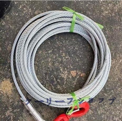 - 【ケーリーフショップ】ウインチワイヤー ケーブル ワイヤーロープ 電動ウインチ用 10mm×20m フック付 耐荷重4t 亜鉛メッキ鋼製 積載車用