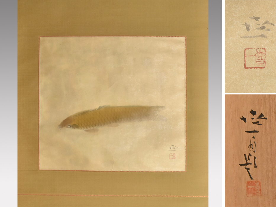 - 【真作】梶喜一「鯉」直筆紙本横物 掛軸 軸 共箱 二重箱 豪華金銀彩 美品 書画 絵画 y1406