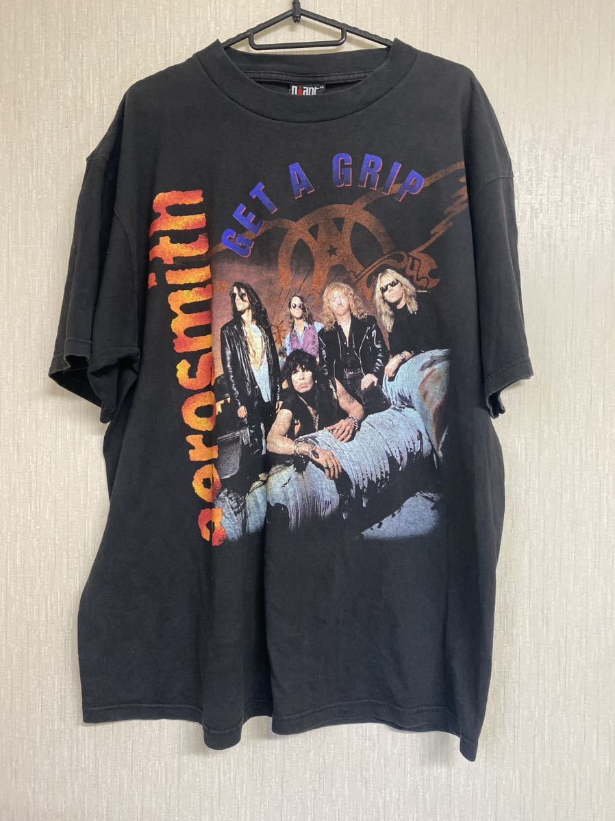 - 90'S当時物 AEROSMITH GET A GRIP Tシャツ ヴィンテージ サイズXL エアロスミス ブラック USA製 バンドTシャツ GUNS N'' ROSES