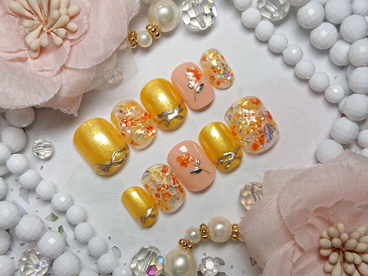 - 即決☆ジェル加工済ネイルチップ☆ベリーショートS シェルフラワーイエロー