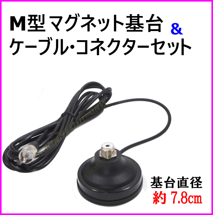 > M型マグネット基台 & ケーブル・コネクター 新品 セット / モービル機 車載型 船 無線機 CB 同軸ケーブル 変換コネクター に 過激飛びMAX