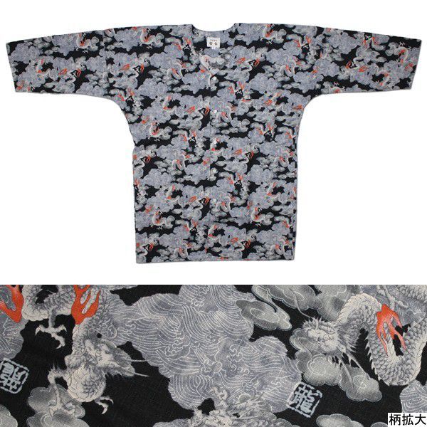 - お祭用品/肉襦袢 鯉口シャツ 龍 192黒 1号(子ども用)
