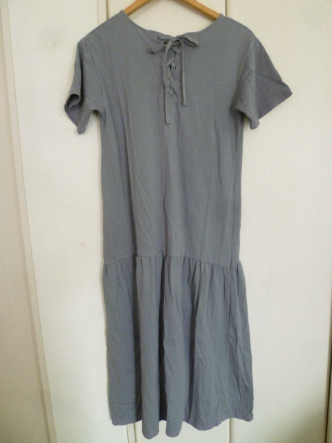 - BEGUM◇グレー背中レースアップ裾フリルロングワンピースM/編み上げマキシ丈リゾート◇a37