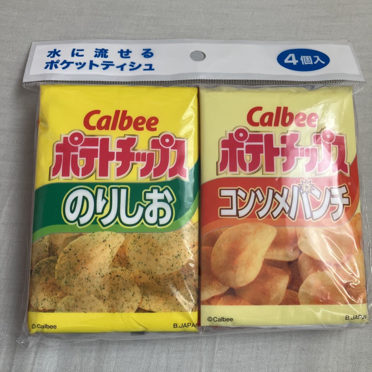 - カルビー ポテトチップス 水に流せる ポケットティッシュ 4個入り 日本製 バンダイ