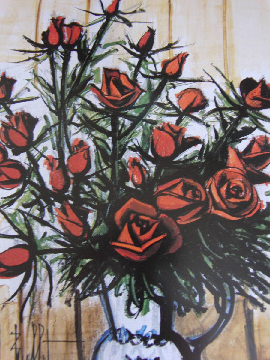 > ベルナール・ビュッフェ、【Roses,vase bleu et blanc】、希少な額装用画集より、厳選、新品額装、マット額装付、状態良好、Bernard Buffet