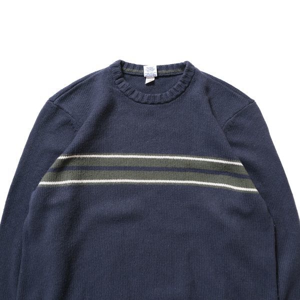 > 00's オールドネイビー チェスト ボーダー アクリル ウール ニットセーター (L) 紺系×緑 ライン入 00年代 旧タグ ギャップ OLD NAVY GAP