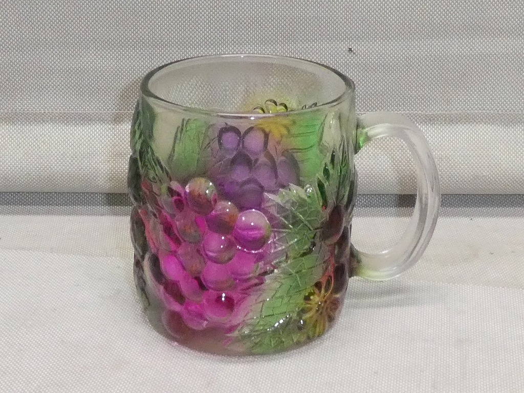 - ●カラフル 葡萄 硝子 ガラス ジョッキ プレスガラス レトロ●硝子マグ