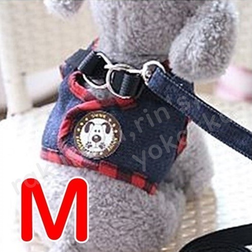 > ベスト型 ハーネス【M】赤ふちどり/ネイビー★ 胴輪&リード 着せやすくて苦しくない 小型犬 中型犬【濃紺 M】犬 ペット 犬服