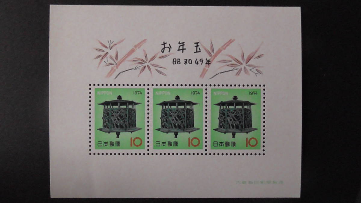 - 年賀切手 昭和49年 小型シート 梅竹透釣灯ろう