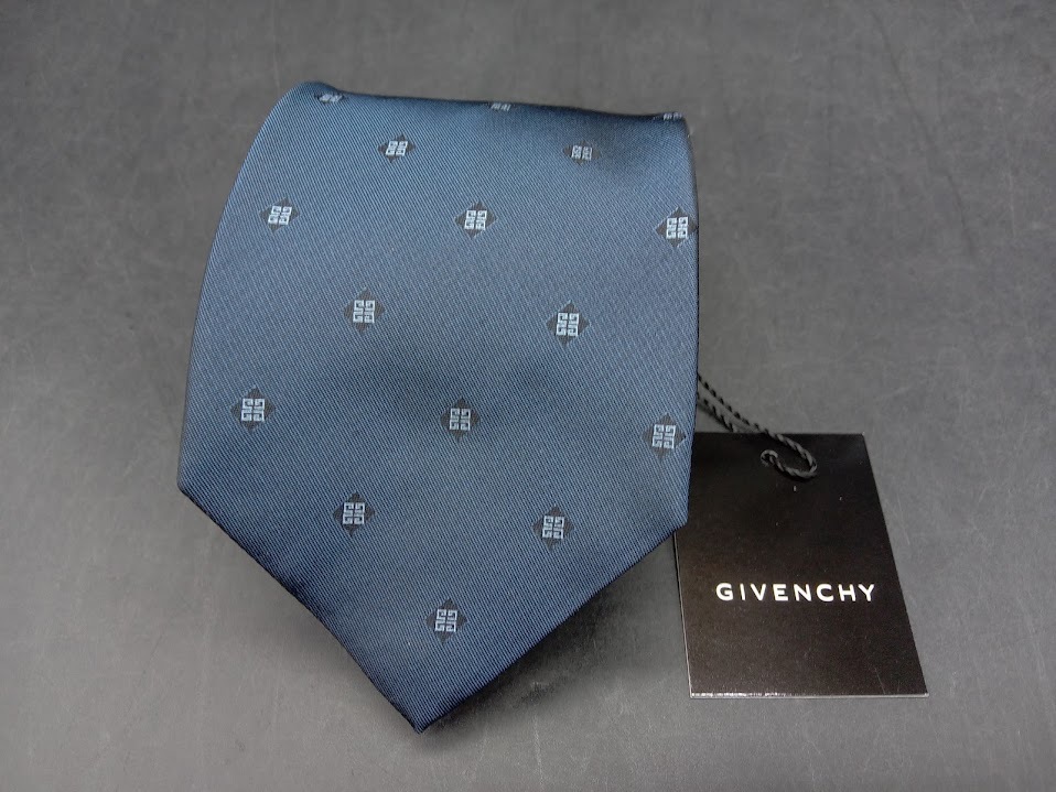 - ▽ GIVENCHY ネクタイ / ジバンシイ ビジネス スーツ 小物 メンズ 結婚式 プレゼント シルク ロゴ 小紋 ブルー