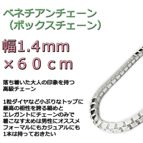 - ベネチアンチェーン 1.4mm 60cm シルバー925 ボックスチェーン dxs