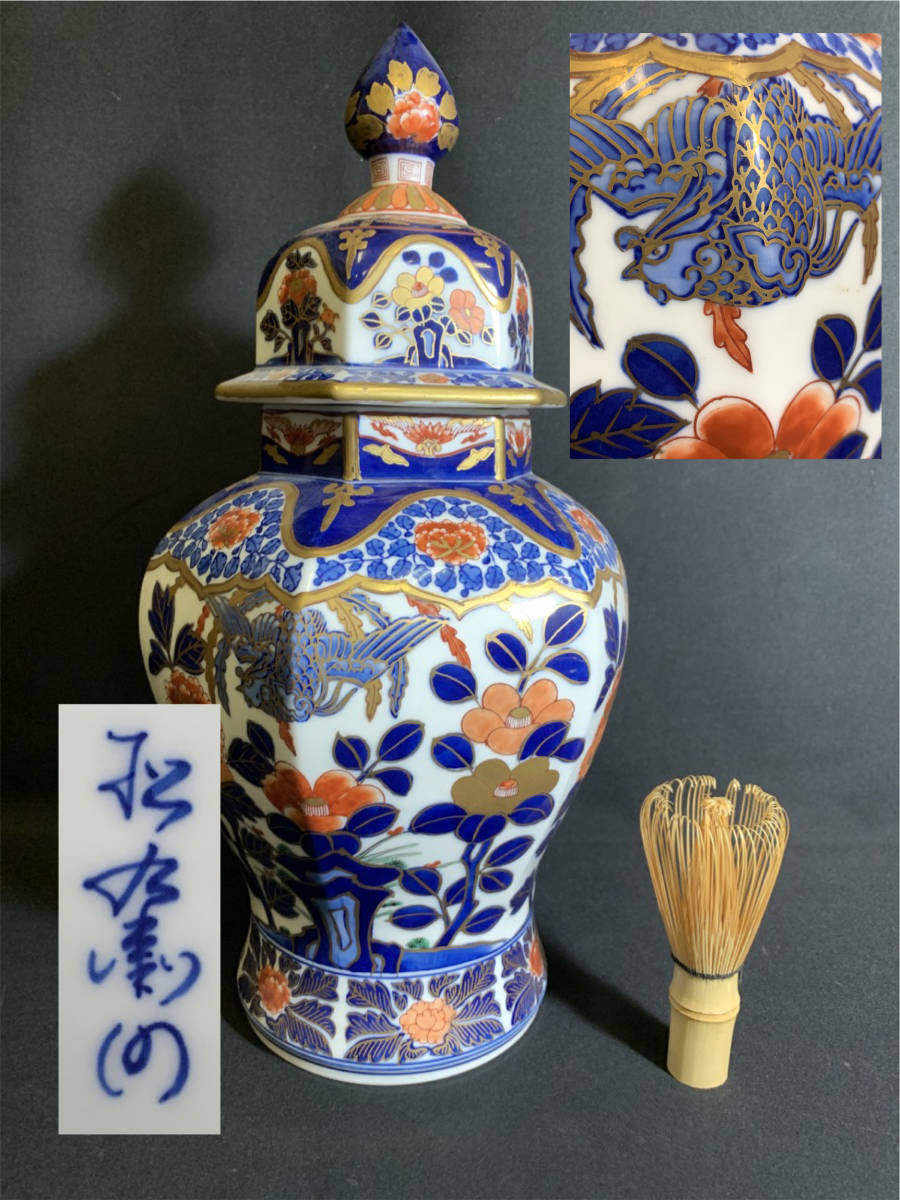 『資産家保有品 伝統工芸師 名工:緒方松右衛門 有田焼 牡丹唐草割花絵沈香壺 陶芸 飾り壷 沈香壺』