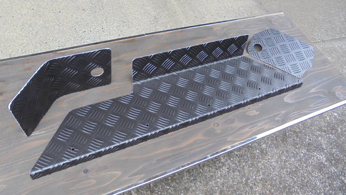 - ハイエースW 100系 スライドドアステップカバー一式&フロントドアステップカバー最終型 アルミ製縞板 アルマイトブラックカラー