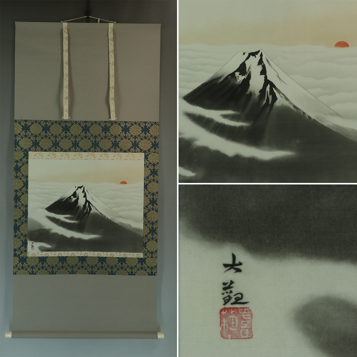 - 【巧芸】横山大観【神州第一峰】◆絹本◆合箱◆掛軸 u12160