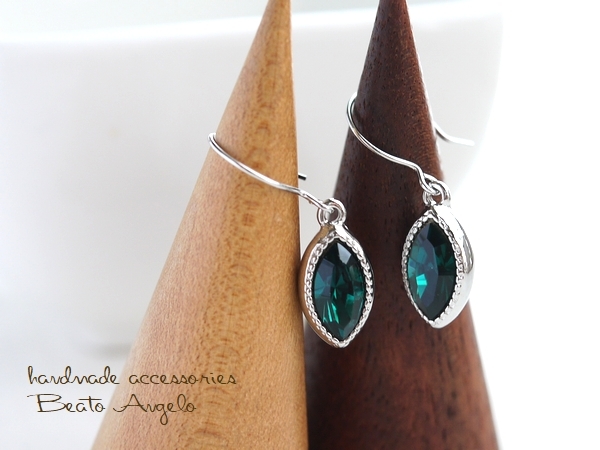 - ◇+angelo+スワロフスキー 4228のマーキスピアス(p-025)エメラルド S 一粒 グリーン 秋冬
