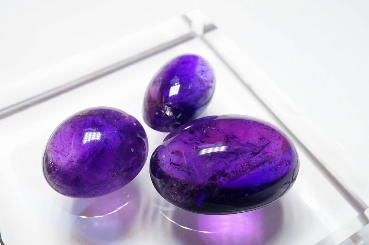 - 【限定特別即決価格!】希少!甲府で研磨加工!極上上品質天然アメジスト(紫水晶)高透明度ルース3個セット25.9ct