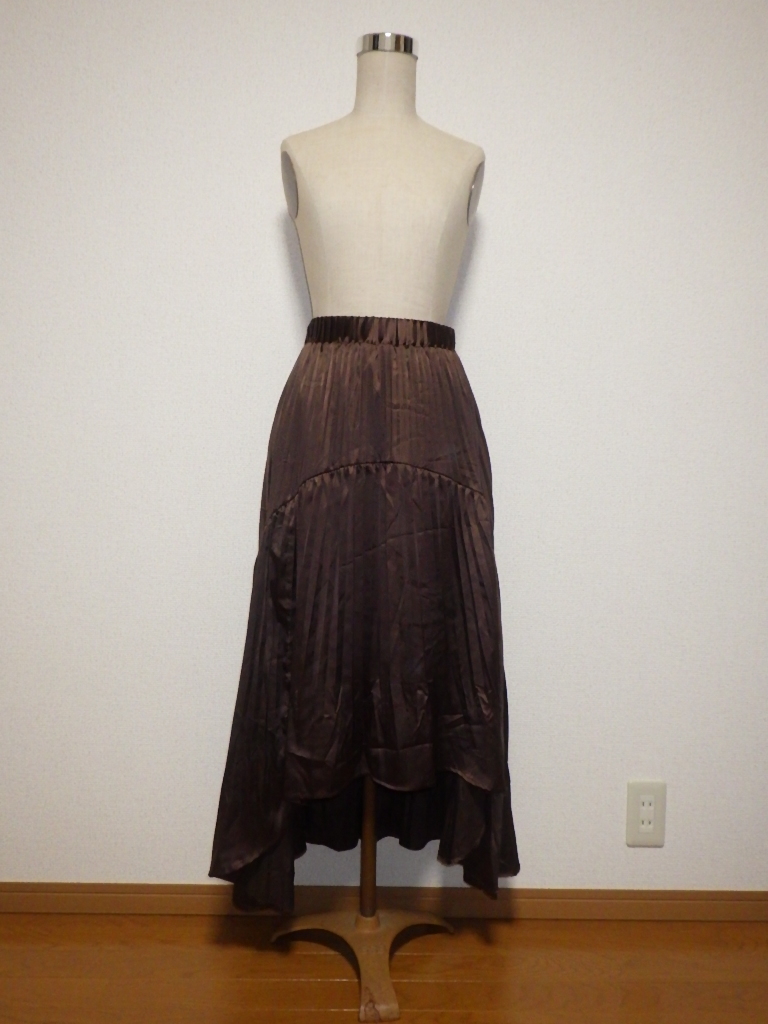 - Chico つるつる光沢サテン プリーツ フィッシュテール ロング スカート 331