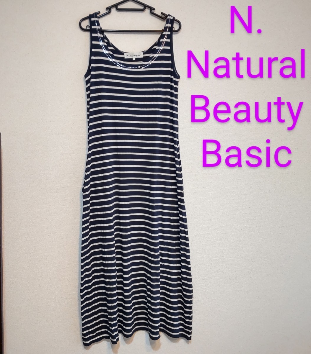 > エヌ ナチュラルビューティーベーシック NBB マキシワンピース ロング ノースリーブ ボーダー ストライプ ワンピース 白 ネイビー 紺